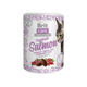 Composition: chicken dehydrated meal (40%), yellow peas, hydrolyzed chicken protein (10%), chicken fat (preserved with tocopherols, 9%), sweet potatoes, tapioca starch, coconut (4%), blueberries (4%), hydrolyzed chicken liver, salmon oil (2%), flaxseed (1%).