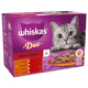 - WHISKAS® 1+ Poultry Feasts adult cat food pouches in jelly are specially prepared to preserve the natural goodness and deliciousness of high quality ingredients and will see your cat rush to the bowl faster than ever before! Made with sustainably sourced ingredients, these cat food pouches contain everything your cat needs to keep them happy and healthy.Specially formulated to provide 100% of your 7+ cat's daily needs and is a natural source of fibre.Scientifically balanced mineral levels to support urinary tract health.Vitamin E and Taurine to help to support natural defences.With Taurine to help support a healthy heart.Dry cat food is made in factories that use 100% renewable energy.Made with no added artificial colours or flavourings.