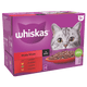 - WHISKAS® 1+ Poultry Feasts adult cat food pouches in gravy are specially prepared to preserve the natural goodness and deliciousness of high quality ingredients and will see your cat rush to the bowl faster than ever before! Made with sustainably sourced ingredients, these cat food pouches contain everything your cat needs to keep them happy and healthy.Made with 100% high quality ingredients and is formulated to provide 100% of your 1+ cat's daily needs.With high quality protein to support strong muscles.Formulated with Vitamin C to help support natural defences.With Zinc, essential for healthy skin and coat.We are committed to reducing our environmental impact. 85% of our factories in Europe use renewable electricity and we’re working to move to 100% by 2025.