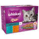 - WHISKAS® 1+ Duo Ocean Delights adult cat food pouches in jelly combine two of your cats favourite flavours in one glorious meal, without compromising on nutrition. Each wet cat food pouch is crafted with two irresistible flavours for a divine taste sensation that even the fussiest of cats cannot resist! Purrs guaranteed.Each glorious wet cat food meal contains dual flavour for double the taste for purrfect satisfaction.Containing B vitamins and balanced minerals - everything your cat needs to help keep them healthy.1+ Adult cat food containing four heavenly fish combinationsCat food that provides 100% of your cat's daily needs.We are committed to reducing our environmental impact. This box is 100% recyclable & contains recycled paper.Fish in our wet cat food recipes is sustainably sourced.